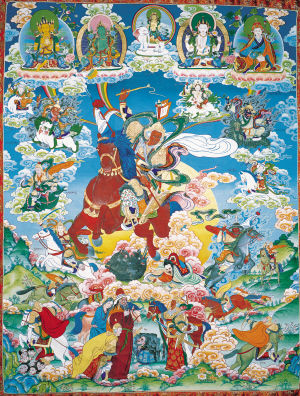 過去通過口耳相傳方式傳承的《格薩爾》,在影像時代將以生動的形式呈現在銀幕上,令人期待。唐卡《格薩爾征戰圖。 資料圖片