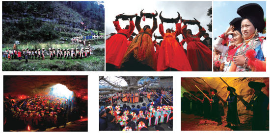 我急著深入其中去探究讓祖先得以藏身,并使得一個家族發展壯大的山洞,一睹它的神奇與秘密?;貧w祖先居所,蕩人心魄的蘆笙在山洞里陣陣響起,喚醒了地心深處的祖靈。我感覺到了大地與生命的交響,輕籠了我的一抹幽婉和感傷。