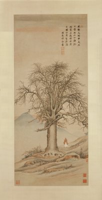 《大樹風號圖》軸,明,項圣謨作,紙本,設色,縱115.4cm 橫50.4cm.