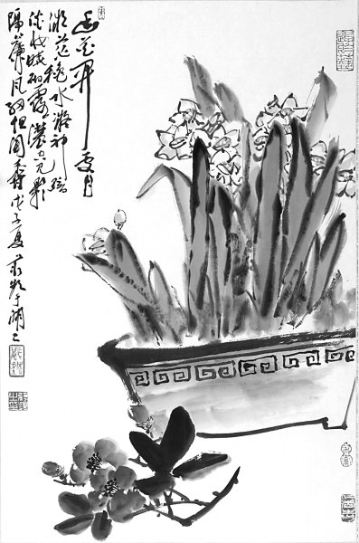 作為畫家,他得到過劉海粟、謝稚柳、陸抑非、朱屺瞻、程十發等大師的指點;作為篆刻家,他師承當代篆刻大師韓天衡,豐富了藝術表現能力。多領域的涉獵使其藝術創作形成特有的風格,以書入畫,以畫入書,書畫并舉,風格獨具。