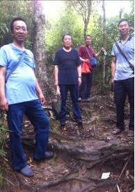 我們拍照時,梅主席又先行爬山去了,這使曾經始終走在前邊的祁將軍、孫玉民和我開始落后,我打量參天古樹,祁將軍指著一棵樹說那是紅木,他搶拍了鏡頭。我輕松地拔出一株小樹枝,捏在手里想帶回去當盆景。