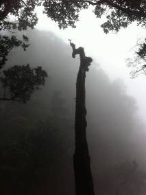 雨像過境的瘋婆子,一會兒就消失了。雨停后,山上的霧氣漸呈深濃的灰色,一棵枯樹干在懸崖上顫抖,樹枝張開時又像是忘乎所以地起舞,它顯得那么孤獨而自信,它是怎么枯朽的?老化還是雷擊?