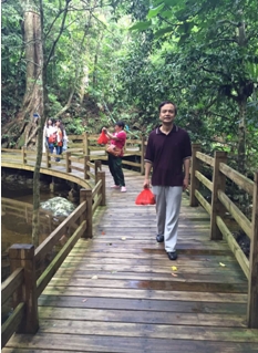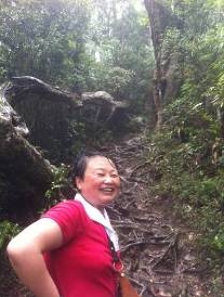 晚餐時,梅主席跟作家們談起自己爬五指山的感受,說第一次下山時被抬了下來,第二次穿著拖鞋上去了,語氣輕松,一雙“烈日灼心”的眼睛絲毫看不出登五指山的挑戰性,大家也就沒把登五指山看得過重,穿拖鞋都能登上五指山的“梅廣告”,讓文友們真的輕視五指山的險峻了,但梅主席最后強調了一句:五指山不是登而是爬。因為要保護熱帶雨淋的生態,有一段路沒有棧道,關鍵的地方架了幾處鐵梯子。
