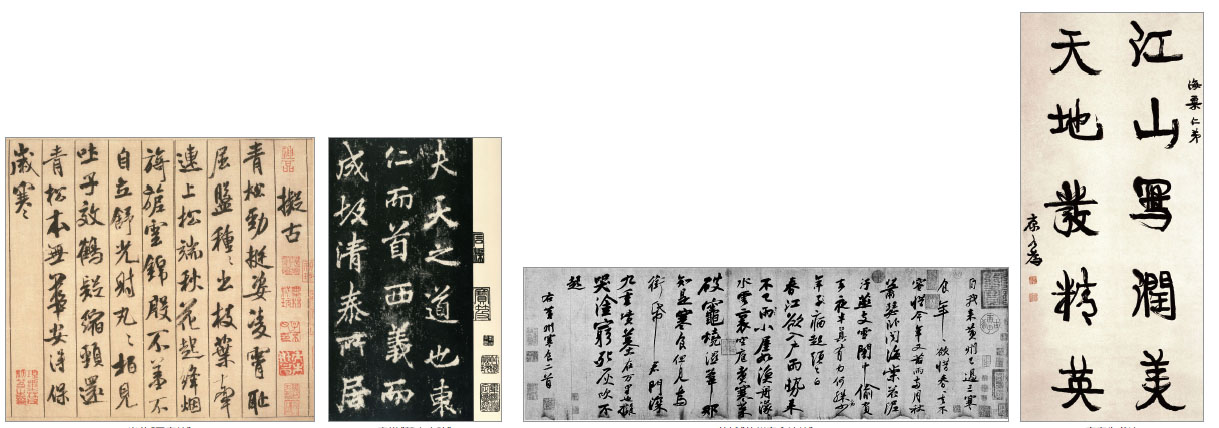 米芾《蜀素帖》     李邕《麓山寺碑》           蘇軾《黃州寒食詩帖》            康有為書法