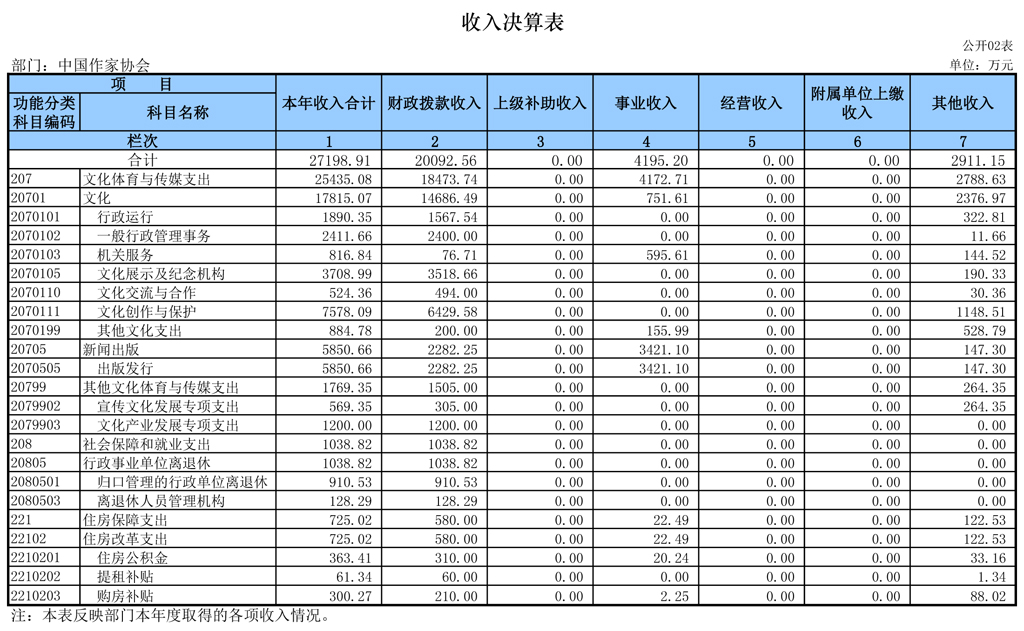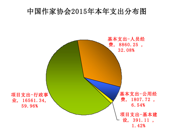 中國作家協會2015年本年支出合計27620.42萬元,其中: