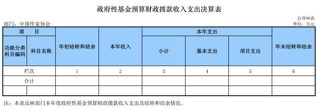 中國作家協會2015年無政府性基金預算財政撥款收支。