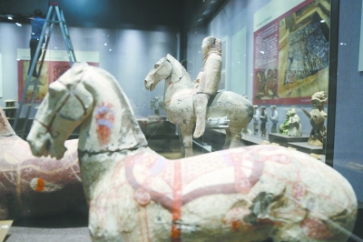 “山東地區兩漢文明展”展出的“彩繪白陶馬”。 山東博物館供圖