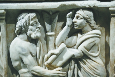 “古羅馬的輝煌”展出的“哲學家及繆斯女神雕刻石棺”。山東博物館供圖