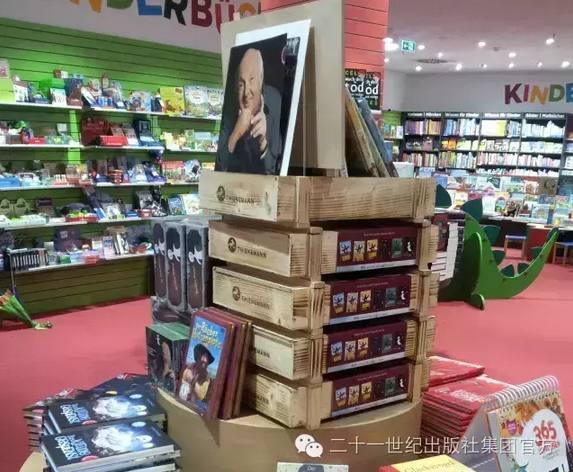 此外,程瑋獲得提名的翻譯作品《大盜賊》,是德國著名兒童文學大師奧得弗雷德·普魯士勒的重要作品。下面這張照片,是幾年前我在法蘭克福書展附近的一家書店隨手拍下的。普魯士勒的《大盜賊》和他的《小女巫》《小幽靈》《小水精》(后三種的中文版收入了“彩烏鴉系列”),碩大的木箱禮品裝,碼放在書店中央最顯眼的位置。