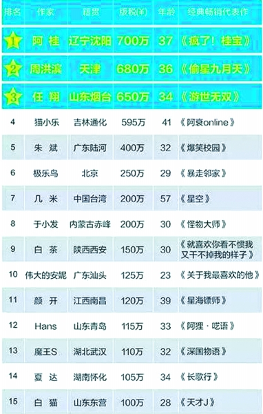 但是,如果你認為網紅漫畫家只是會畫畫“雞湯”、段子和自我營銷,就太小看他們了。在《華西都市報》、封面新聞等出品的“第十屆作家榜·漫畫作家榜”中,出現了多位網紅漫畫家(如左圖)。他們的收入從何而來?