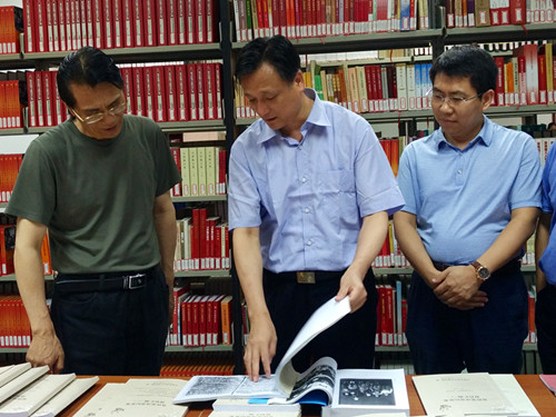何建明代表中國作家出版集團向中國井岡山干部學院贈送了文學圖書。