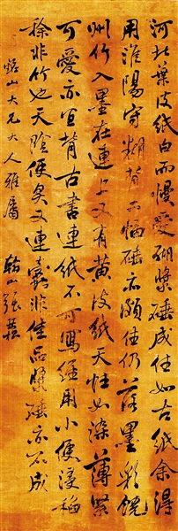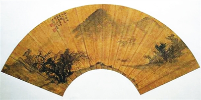 扇畫的落款時間是“嘉慶廿年端午后一日”,即嘉慶二十年(1815)農歷五月初六,張岳崧嘉慶十四年(1809)中探花,授予翰林院編修職務,兩年后嘉慶十六年(1811)秋,張岳崧以父親八十大壽為由請假南歸,祝壽后繼續請假在家陪侍父親,不料,嘉慶十八年(1813)正月,張岳崧父親突然因病去世,所以張岳崧就不得不繼續待在家里守制三年。根據清朝的禮制,守制滿二十七個月即可當三年。嘉慶二十年(1815)四月,張岳崧守制期滿,就可以回京復職。古時由于交通不發達,舟楫是南方人最主要的交通工具,張岳崧北上中原以走水路為主,去京城要走好幾個月。端午后一日正好是張岳崧返京復職的途中,應該說當時張岳崧心情比較復雜,一方面他一路走一路游山玩水,美景勝概盡收筆下,每到一處寫下了很多贊美的詩文,吟詩作文之余,畫一把扇子,以備避暑之用便是順理成章、再正常不過之事了。另一方面,他守制賦閑在家幾年,十分清凈,一想到又要重回官場,爾虞我詐,大有山雨欲來之勢,于是他有感而發、心隨筆運、凝思成景,一幅仿元人的《溪山欲雨》圖便躍然紙上,也因此暗示將要面臨的官場險境。值得一提的是,三年后,嘉慶二十三年(1818),張岳崧因纂《明鑒》按語錯誤被革職,似乎冥冥中已有安排,三年前就有預感,世上之事就有這么巧合?!傲憧V殘墨,人多寶之”,當這把折扇被用爛以后,就被有心人拆下扇骨裱成扇面悉心收藏,故得以留傳至今。