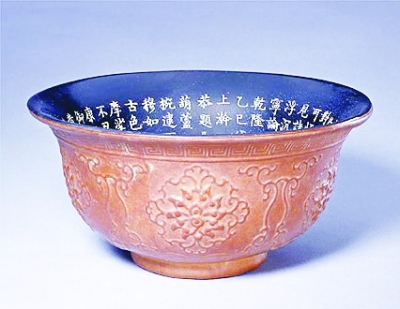 “康熙賞玩”葫蘆碗,內書乾隆御詩《恭題壺盧碗歌》。