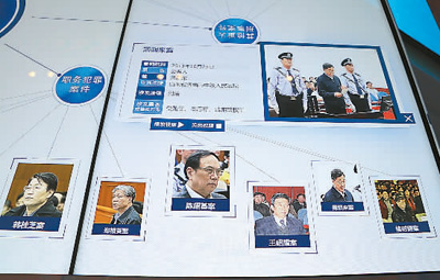 觸控臺上顯示出大案要案的審判信息