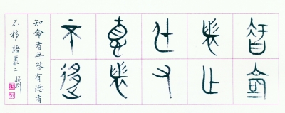 記者:用楚簡的文字創作,對創作的內容是不是也有一定的要求?我看到您寫的作品《孔子論學八體書二種》,在內容上有怎樣的選擇?