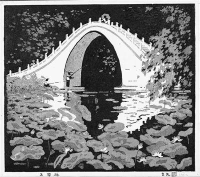 圖為古元版畫作品《玉帶橋》。