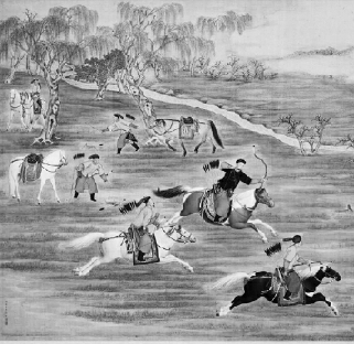 清朝中葉以后,火器較為發達,弓箭作為冷兵器,仍然是騎射競賽或表演中的重要項目。
