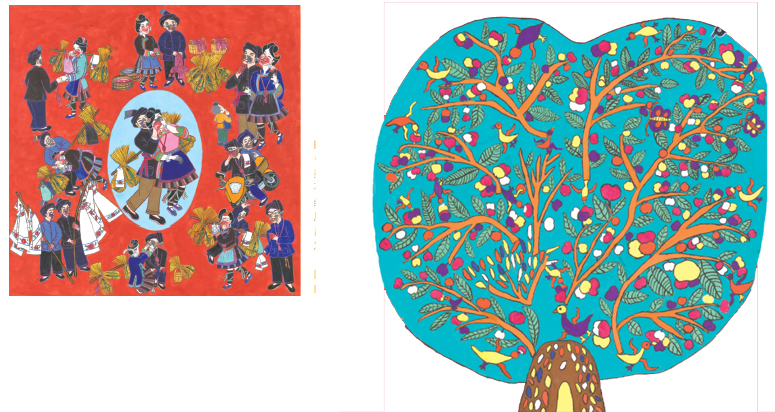 三江侗族農民畫來源并植根于侗族藝術的沃土,來源于侗族人民豐富多彩的生活,他們在勞作之余,放下鋤頭,拿起畫筆,把古老的侗族民間藝術融入現代繪畫中,以畫傳情、以畫傳神,表達了畫家們對自然、對家鄉、對生活的美好向往和追求,其在民族人類學、民族審美學等方面也具有極高的研究價值。 (民 文)