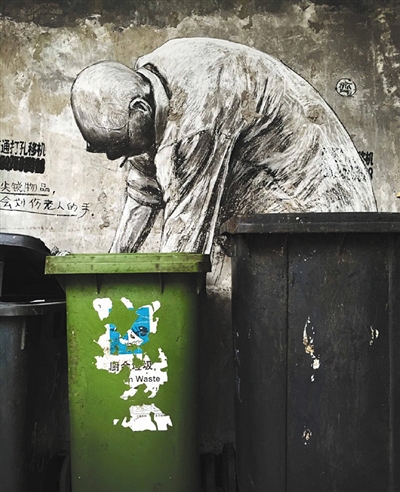 前 齊興華在雜亂的垃圾站畫上拾荒老人,卻被物業抹去這一縷溫情,然而垃圾站的環境并沒有改善。
