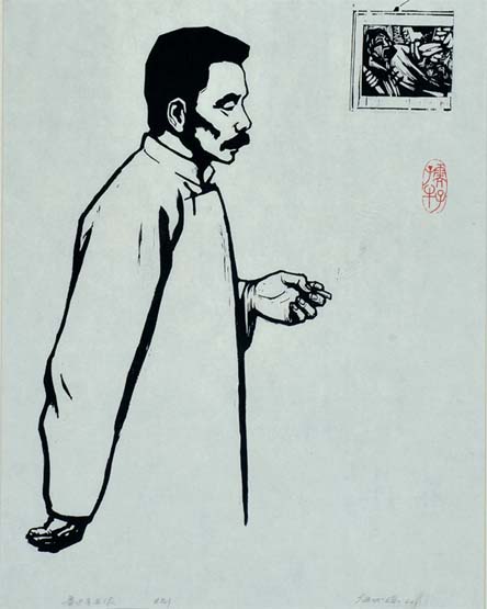 作為藝術上的“多面手”,他構筑了豐富的藝術創作世界,無論是版畫、素描還是插圖、速寫、彩墨,他在藝術上的特質也是非常鮮明的。他對生活抱有美好的憧憬,但他的性情又是非常樸素的,一向虛懷若谷,不趨功利。這種樸素的心靈世界也就自然地演化成他樸素的藝術格調,在樸素中蘊涵著感人的力量。他在刻畫人物形象時,始終帶有與所畫的人物進行對話的特點,真正把表達人物的性格與命運作為塑造的重點。在藝術的形式語言上,從他對多種藝術形式的涉獵和運用本身就可以看出其對藝術的深愛,在真實的生活感受基礎上,一直堅持進行藝術形式的探索,以新穎的視角進行畫面的經營。在黑白木刻作品中,他注重刀法的組織和布局,含蓄地將年畫、剪紙等民間藝術形式融會貫通。在套色木刻作品中,他用簡明的象征性色彩營造出畫面的主調,色澤單純而富有內在的力量,例如他創作的小說《鐵流》《青年近衛軍》封面、作品《在激流中》《豐收的喜悅》《苗家女》等。樸素清新、優美如詩是他版畫藝術的魅力。