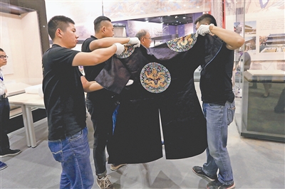 石青色云龍袞服被開箱取出