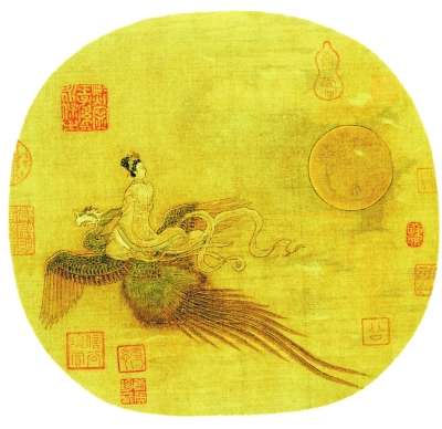 五代時期周文矩所繪《仙女乘鸞圖》里的中秋大月亮(現藏于故宮博物院)