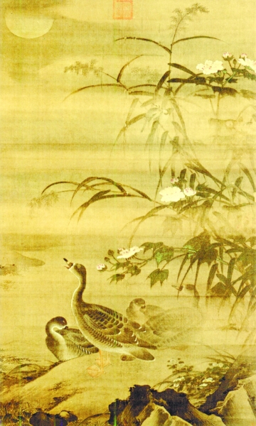 明呂紀所繪《秋渚水禽圖》中的中秋月夜(現藏于臺北故宮博物院)