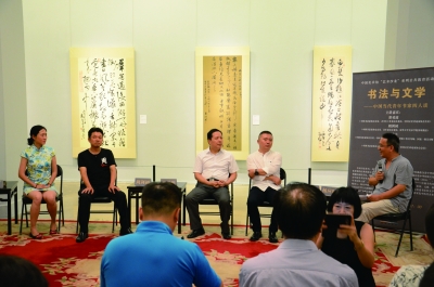 展覽以藝術沙龍系列公共教育活動之“書法與文學——中國當代青年書家四人談”取代開幕式,四位參展青年書家崔勇波、周劍初、劉建豐、白銳及公共教育部主任楊應時與熱心觀眾圍坐一堂,共同探討中國書法與中國文學之間的關系。