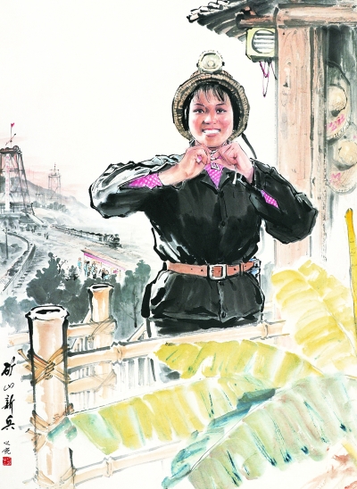 其后的《雪夜送飯》(1958年)、《浴日》(1962年)、《礦山新兵》(1972年)等也都是緊扣時代脈搏的佳作。遲軻先生就曾這樣評價:“楊之光的特長是引進了西方的光和色”。在作品《礦山新兵》(1972年)中可以看到,這種生動明亮的色彩與寫意傳統相結合,大大拓展了現代中國水墨畫,尤其是人物畫的空間表現力。