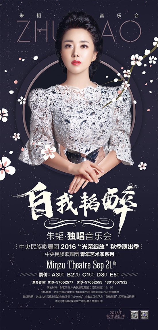 9月21日,中央民族歌舞團青年藝術家系列將推出女中音歌唱家朱韜獨唱音樂會《自我韜醉》。作為女中音歌唱家,朱韜演唱的曲目涉及面廣,中外古今都有染指,既能唱“卡門”也能唱“小河淌水”,是一位可塑性很強的歌者。她將用自己的歌聲,讓觀眾陶醉在美麗的秋夜。
