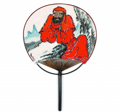 “手中白團扇,凈如秋團月”。中秋剛過,依舊炎熱,手執團扇,細細賞玩。扇面是梁建平的羅漢作品,淺絳的紙色,帶著絲絲的秋涼。沒骨的水墨,暈開散淡的禪意。扇面上的羅漢,或坐、或站、或沉思靜穆、或拈指微笑……有著乾坤機杼盡在平素的了然。