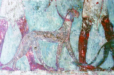 唐代貴族狩獵之風盛行,在習見的呼鷹帶犬間,西亞傳入的獵豹格外搶眼。獵豹是世界上跑得最快的動物,分布于非洲、西亞、中亞和印度,生性溫和,善跑嗜睡。古人便通過不斷跟蹤騷擾,在它困乏至極時捕獲它。被馴服后的獵豹是狩獵的得力助手。最先馴服獵豹的是古埃及人,公元前15世紀的法老墓中已出現進貢獵豹的圖像(圖③)。