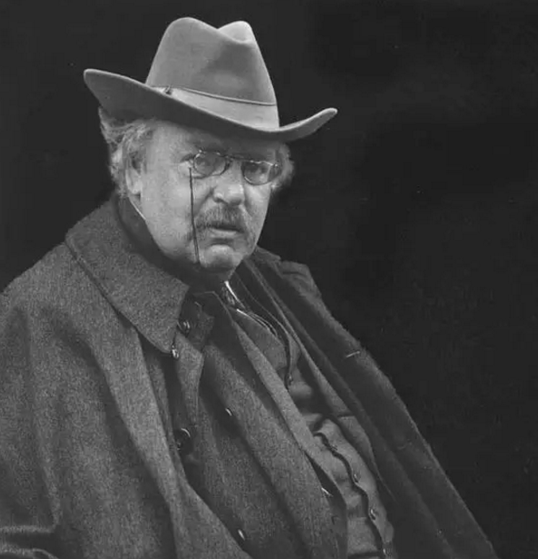 G. K.切斯特頓(Gilbert Keith Chesterton, 1874-1936)是英國小說家、詩人、隨筆作家、報紙撰稿人、基督教護教學家。一生著書八十余部,出版有自己的刊物(《OK.周刊)。在去世之時,他已經是英國最受尊敬、著作被最廣泛閱讀的作家之一。切斯特頓身材高大,個性開朗,胃口、酒量都很大,而且交友眾多,喜歡穿一件大披風,手拿劍杖。