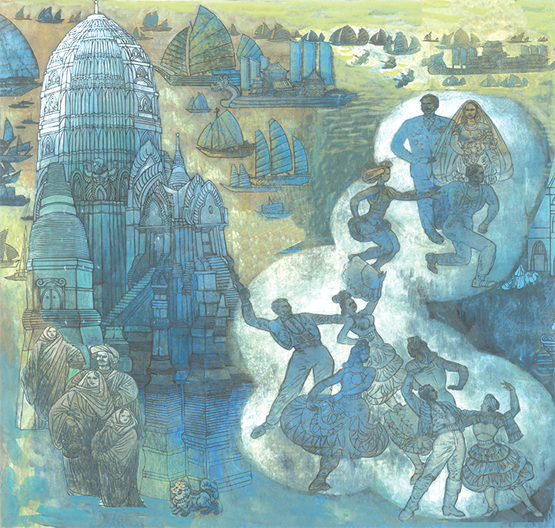 楊曉陽關于絲綢之路主題的創作始自1985年,當年他騎自行車從西安出發,沿絲綢之路到達新疆,沿路考察、寫生、記錄,創作了大量表現絲路歷史、文化和民族風情的作品。此后,絲綢之路沿途多國都留下他的足跡。30年來,他的繪畫技法也從對中國傳統的繼承轉為中西結合,從寫實轉向了寫意。對于展覽的學術主題“從寫實到寫意”,美術理論家邵大箴認為,這是一個很有興味,也很值得思考和研究的問題。從楊曉陽的作品中可以看到用各種不同手段和方法追求寫意精神所做的有益探索,他汲取傳統藝術和民間藝術營養,也有廣闊的國際藝術視野,賦予自己的繪畫創作具有個性的寫意特色。舉辦此次展覽以及他不遺余力提倡的寫意理論,對當今中國畫的發展應該是有益的。