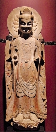 北魏太和十年,即公元486年,孝文帝開始服飾改革,學習南朝的禮儀制度,云岡石窟佛像也由此穿上那種帶有士大夫氣質的袈裟(一般稱為褒衣博帶式袈裟),然后這種著衣形式在洛陽的龍門石窟發展成熟,繼而在中原北方廣為流行。位于中原北方東部地區的河北曲陽和山東青州石刻佛造像,就是在這種背景下發展和繁榮起來的。兩地均為當時北方最重要的佛像制作中心,其中尤以青州龍興寺遺址出土的佛造像最令筆者駐足。