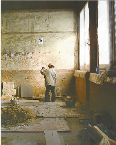 11月8日,工作人員在大高玄殿大殿內施工。新華社記者 金良快攝