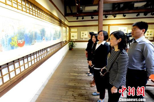 展覽圍繞文學展開,展出黃永玉文學手稿、版本、繪畫等不同樣式的作品200余件,吸引不少觀眾前來觀展。 記者劉可耕 攝