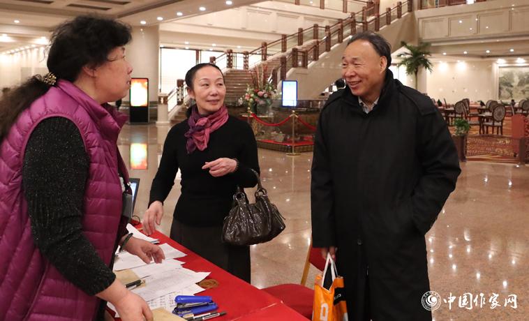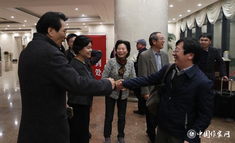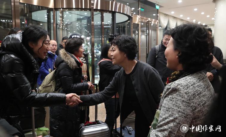 11月28日,中國作協主席鐵凝、副主席何建明迎接上海代表團。
