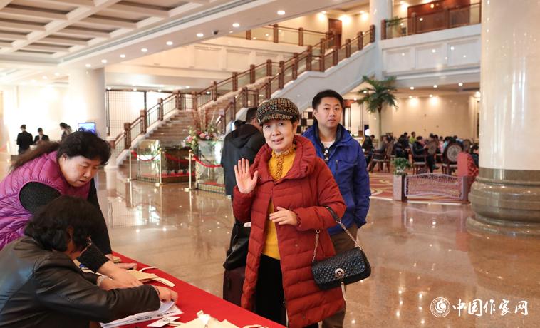 11月27日,中國作協第九次全國代表大會與會代表張穎、梁平等報到。