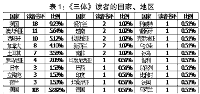 從表1看,最值得關注的是這些來自30多個國家的讀者的書評,包含了大量的跨文化傳播過程中不同文化碰撞的火花。本文按照作品風格、故事情節與翻譯兩個角度,分析讀者對于《三體》的認知和態度