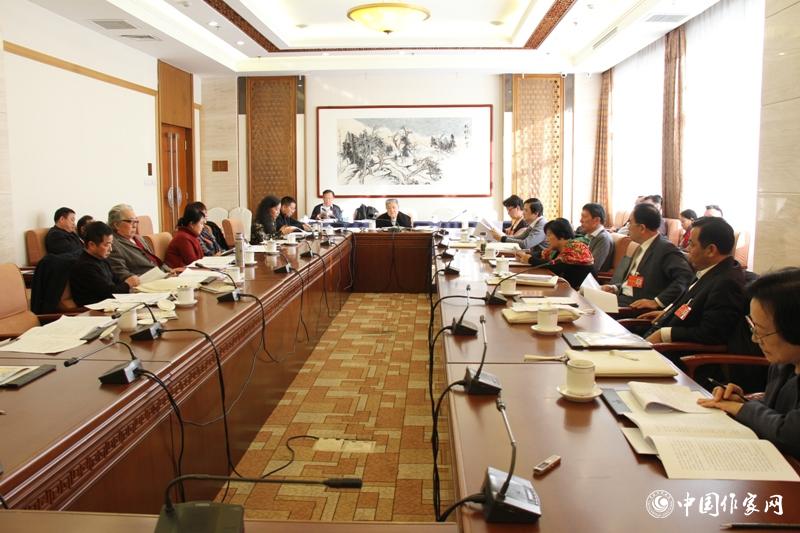 12月1日下午,中央國家機關代表團分組討論,莫言等作家參加。