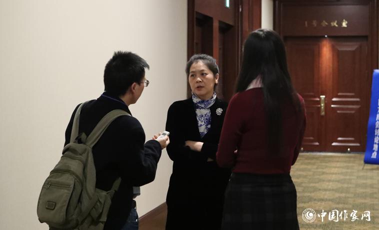 12月1日,黑龍江、四川代表團分組學習討論,遲子建代表接受媒體采訪。