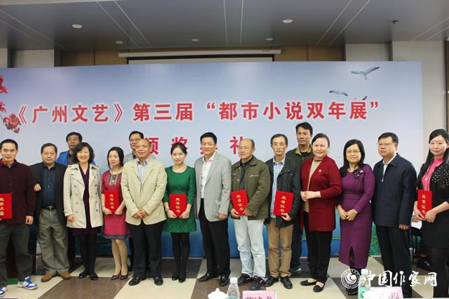 為打造新世紀文學期刊品牌,展現都市文學的魅力,激勵新人新作,12月8日,由廣州市文聯、廣州市文藝報刊社主辦的“《廣州文藝》第三屆‘都市小說雙年展’優秀作品頒獎儀式”在廣州舉行。周李立《透視》獲一等獎,鄧宏順《良妻》、劉榮書《空中小姐》獲二等獎,黃金明《倒影》、趙劍云《你有時間嗎》、楊劍敏《跟蹤》獲三等獎,簡明《我是明星》獲新人獎。廣東省作家協會主席蔣述卓、廣州市文聯主席李鵬程、廣州市文藝報刊社社長鮑十等出席活動并為獲獎者頒獎。