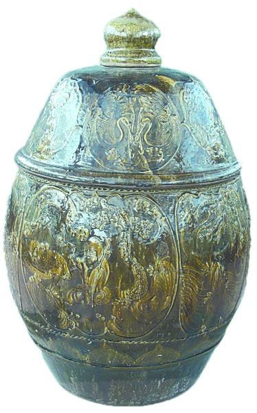 河北省豐寧滿族自治縣是多民族地區,曾先后有肅慎、山戎、匈奴、庫莫奚、契丹、女真、蒙古、滿洲等民族聚居,他們在這里創造了燦爛的民族文化,同時也給后世子孫留下了大量的珍貴文物。豐寧博物館收藏著一件遼代的“三彩瓷枕”(左圖)。這件“鎮館之寶”學名是“三彩云頭形雙碟牡丹紋貼花獅面五角長方形枕”,是遼代的生活用品,目前在全國是唯一一件。右圖為“和尚坐罐”,又叫“蟹青釉開光龍鳳仙人壽字松鶴紋帶蓋葫蘆頂大甕”,為元代和尚的喪葬用品,全國也只發現兩件。