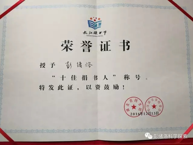 這次是老家宜昌市圖書館給我申報了這個獎項,感謝家鄉圖書館對我努力付出的肯定,更感謝家鄉父老鄉親對我的關注和支持。