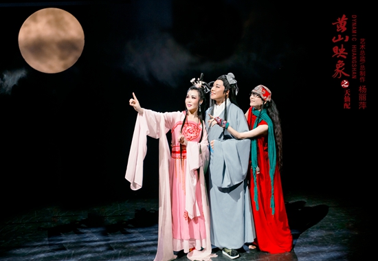 繁華時代,人們早已被俗世紅塵席卷。旅游可以說是人世間,人可以接受的一種精神出走方式,或者說是另一種生存方式。借助外物,延伸著人的身體與壽命,也是人類不死的夢想。如《黃山映象之天仙配》中紅綢,也是臂膀和手指的延伸。七仙女難香點燃,神仙姐妹集體下凡,一夜之間織出紅錦十匹。大幅大幅的紅綢,漫天飛舞,富有想像力也極富表現力。漫天飛舞的紅綢最后壓死了傅員外。