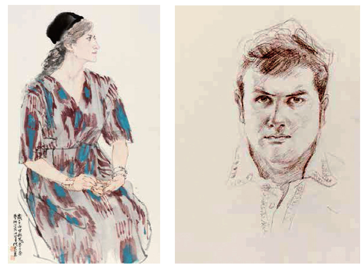 要想體會這個民族的情感,就一定要聽他們的民歌。過去我每到一個地方,都要聽當地的民歌和地方戲。在新疆的一路上,也是在車里播放著一集一集的《十二木卡姆》,這是匯集了詩、歌、樂、舞、奏、唱于一體的維吾爾族音樂,把維吾爾民族的蒼涼與歡樂的情感全部展現了出來,讓我們更準確地把握住維吾爾族的基調,了解和體會新疆維吾爾民族的歷史和情感。到了塔縣自然要聽塔吉克民歌了,聽音樂是體會民風民俗情感內涵的有效方法,也給我帶來了奇妙的體驗,就像這次在塔什庫爾干發生的趣事。在古爾邦節的聚會上,我見到了兩個漂亮的姐妹,她們長得很美,分別身著自己縫制的粉紅色和玫瑰紅的民族服裝。盡管姐妹倆都是農村姑娘,但善良與樸實之外,還具有著高貴的氣質。聚會結束后,村長幫我們在村子里找到了姐妹倆,我們激動地分別畫起了她們。有意思的是,我在寫生的過程中,隱隱約約飄來一陣陣歐洲的交響音樂,在音樂的伴隨下,更激發了我對他們的理解和縈繞在心里的那股藝術的情感。我似乎身臨古代的歐洲,完成著如古典大師般的寫生工作,情緒特別高昂,儼然在畫一幅古典美人。這音樂好像是從窗外傳來的,我禁不住問姐妹倆:“你們村子里平時就播放這類音樂嗎?”她們說:“是的?!蔽覇枺骸澳銈兿矚g聽嗎?”她們說:“特別喜歡,平時我們也聽?!蔽冶簧钌畹馗袆恿?!實際上,這個音樂是從我的手機里發出來的,不知道怎么就碰到了音樂播放鍵。盡管是虛晃一槍,但是音樂所帶給我在畫這位姐姐時所發揮的情緒激發出了美的情愫,使我更準確地把握住對象的審美內涵,音樂與我所描繪的對象感覺是何等的吻合!這真是天意呀!