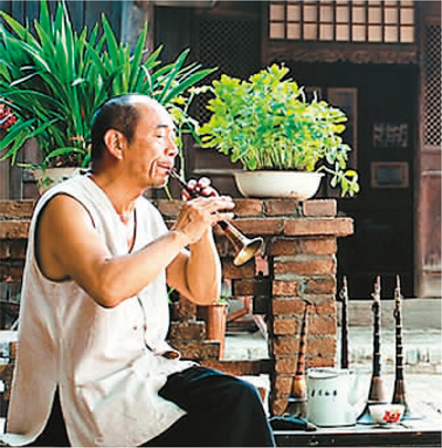 片中最動人的一場戲,是最終游家班和焦師傅一起為竇村長吹奏《百鳥朝鳳》。這段戲中,音樂起于焦師傅的嗩吶,隨著情緒的展開,客觀音樂逐漸轉變為主觀音樂。畫面中,游家班勉強團聚,重奏《百鳥朝鳳》。旋律的再度響起,讓人回憶起嗩吶藝人曾經的風格、焦家班曾經的團結和睦,回憶起天鳴的成長與焦師傅的老去。此時影片使用音畫平行的編配手法,音樂像是一個聲音在耳邊把所有回憶娓娓道來,平靜而悲傷。音樂在焦師傅的嗩吶流出血時都沒有變化,隱含著無力與哀傷。直到焦師傅忍受不住咳出血來,演奏被打斷,音樂才停止。焦師傅堅持著打完鼓,堅定而脆弱的眼神與西落的太陽交疊,加上音樂,渲染出哀傷惋惜的氛圍。