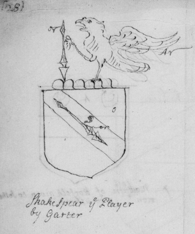 為了尋找更多有關莎士比亞生平的直接證據,研究者們一直在不懈努力。2016年6月29日,《紐約時報》刊登文章,“莎士比亞:演員、劇作家、出人頭地者”,報道美國華盛頓福爾杰莎士比亞圖書館手稿部主任希嗇·沃爾夫最近發現了一批關鍵證據——13幅繪制于16世紀末至17世紀初的莎士比亞家族盾徽草圖,其中一多半圖上有“戲子莎士比亞,襪帶騎士繪”(Shakespearetheplayer,byGarter)等字樣。Player一詞,既有“戲子”之義,又有“伶人;演員”之義;Garter一詞是“襪帶騎士盾徽長”(GarterKingofArms)的簡稱。為了說明襪帶騎士盾徽長是個什么官職,得先從盾徽說起。