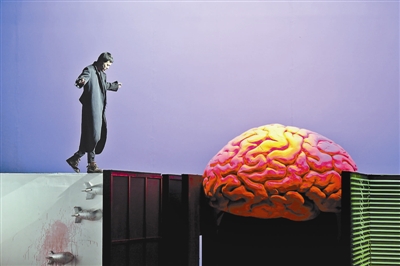 湯顯祖400年前寫就《南柯記》、《邯鄲記》、《紫釵記》、《牡丹亭》,四出劇并稱為“臨川四夢”。孟京輝“胃口”不小,四夢雜糅在一起,構造了一出時長超過四個小時的大戲。上下半部看似并無直接關聯,就連舞美空間都完全不同。上半部充斥著現代生活中的瑣碎嘈雜,表現手法豐富多樣——巨大的斑馬、大腦置景,現場視頻拍攝、音畫同步手段……如一出蒙太奇電影一樣迷離;下半場四白落地,兩個半圓形轉臺往復旋轉,無數把椅子在臺上,完整講述了《南柯記》故事始末。